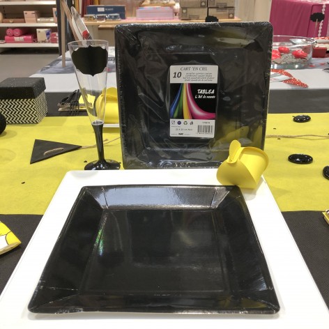 ASSIETTE CARREE CARTON 230 NOIR /10