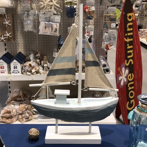 BATEAU BOIS GRIS BLEU 21.5X35.5CM
