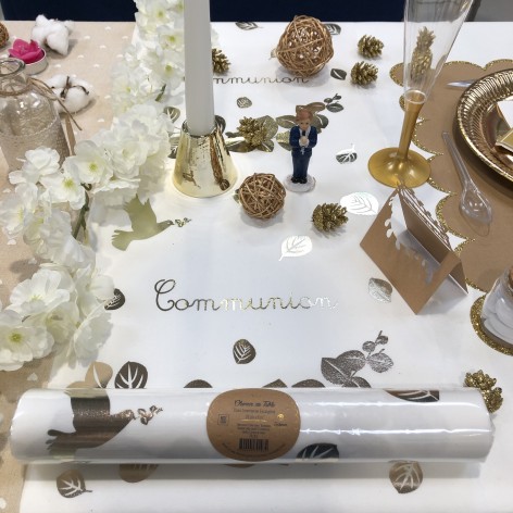 CHEMIN DE TABLE COMMUNION FLOQUE OR COLOMBE 28CMX5M