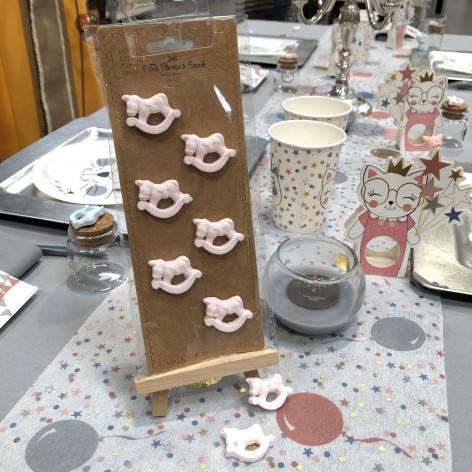 CHEVAL A BASCULE ADHESIF EN PLATRE ROSE 3CM /6