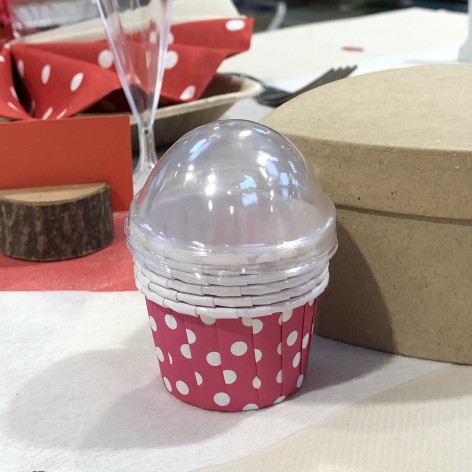 CUPCAKE ROSE POIS BLANC CARTON 3,7X6CM /6