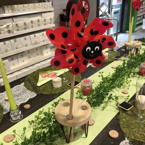 MOULIN A VENT SUR PIC COCCINELLE D.18CM H 47CM