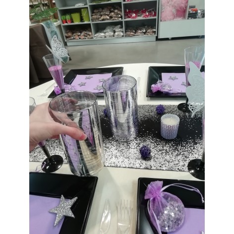 PHOTOPHORE DROIT STRIE ARGENT 9X9X7.5CM