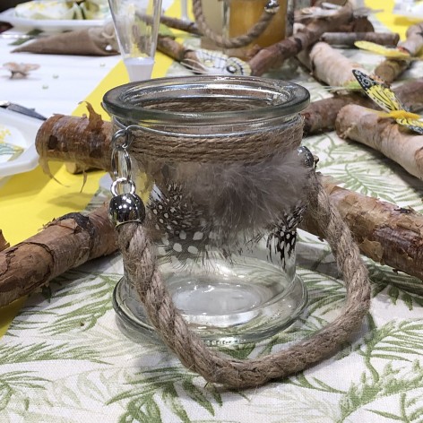 PHOTOPHORE VERRE PLUME MARRON ANSE CORDE 8.5CM