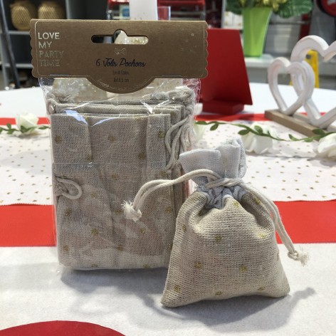 POCHON LIN ET POIS DORES 8X10,5CM /6